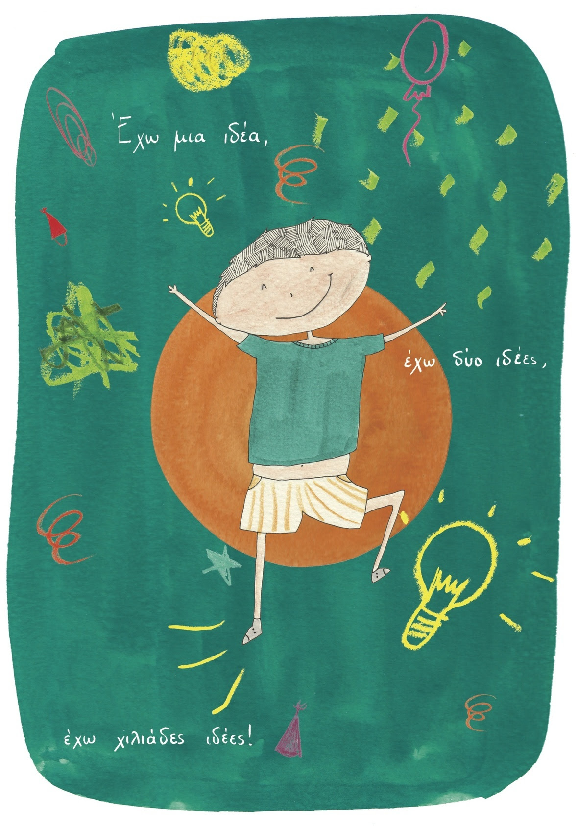 Ήταν κάποτε ένας πιτσιρίκoς που είχε μια ιδέα, δύο ιδέες, χιλιάδες ιδέες! Είχε τόσες πολλές ιδέες που τις σημείωνε στους τοίχους για να μην τις ξεχάσει. Τον μάλωνε η μαμά του. Και μετά τον μάλωνε και ο μπαμπάς του. Μόνο ο παππούς του έδειχνε να τον καταλαβαίνει. Τις ιδέες του τις έβρισκε παντού. Στο δάσος, τη θάλασσα, ακόμα και στα πιο παράξενα μέρη. Την πιο καλή ιδέα όμως την είχαν οι γονείς του…