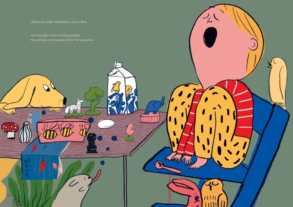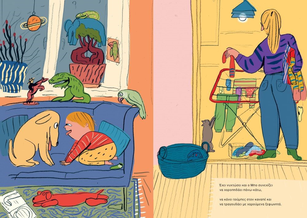 Η μαμά ακολουθεί τον Μπο στον φανταστικό του κόσμο και τον οδηγεί μαεστρικά στη βραδινή του ρουτίνα μέχρι να κοιμηθεί σαν πουλάκι.