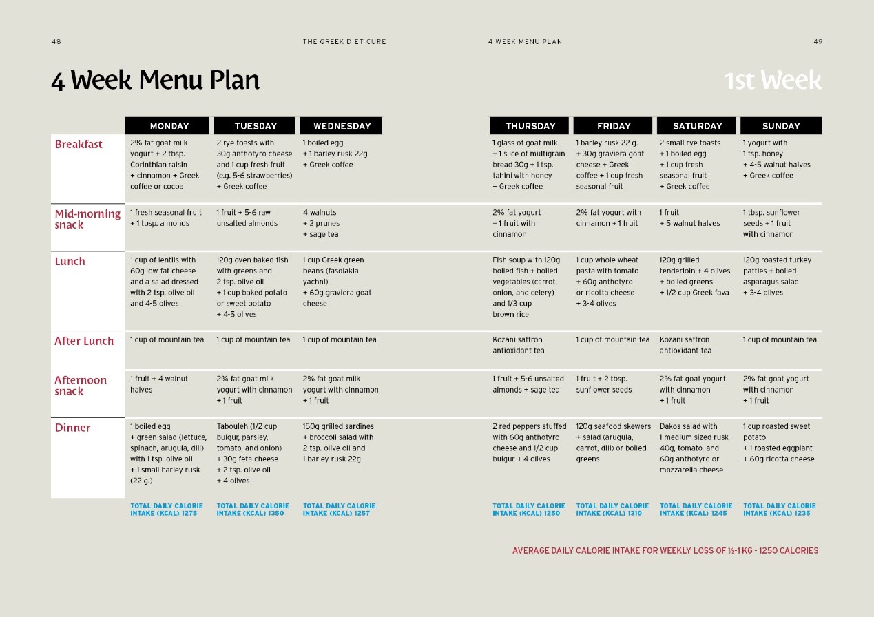 • Ένα πρόγραμμα διατροφής 4 εβδομάδων, βασισμένο αποκλειστικά σε παραδοσιακές ελληνικές τροφές, για να σας κρατήσει σε φόρμα.